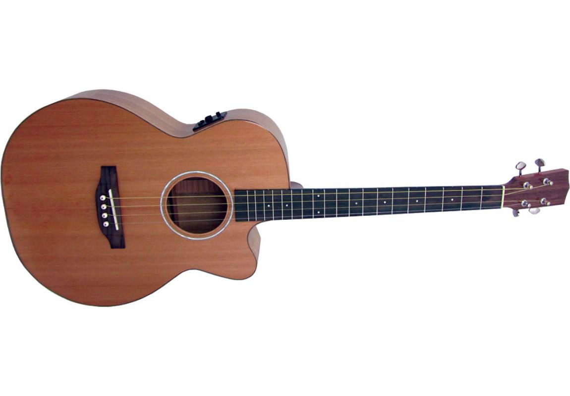 Built with a solid Canadian cedar top with solid koa back and sides. This tenor guitar has a Senna Siamea fingerboard made from locally sourced wood in Vietnam. Available as a left-handed model.