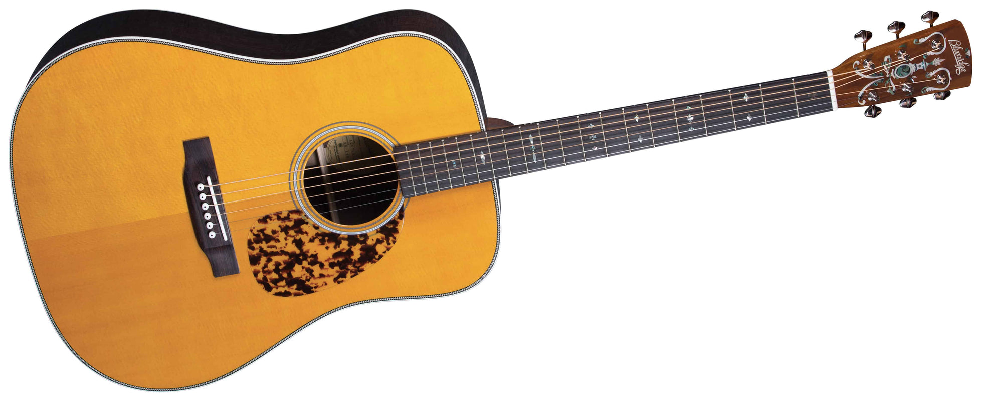 This prewar inspired Herringbone dreadnaught has it all. The BR-160’s great sound and great looks are just part of what will make it one of the more desirable vintage-style acoustic guitars in production today. It starts with a solid Sitka spruce top and hand-carved parabolic top braces that respect the prewar forward x-pattern. Quality Santos rosewood back and sides add a strong bass to the spruce top’s already full sound. The slim mahogany neck is comfortable and features a dovetail neck joint and adjustable truss rod. Beautiful appointments include a Dalmatian tortoise-style pickguard and mother-of-pearl neck and headstock inlays.