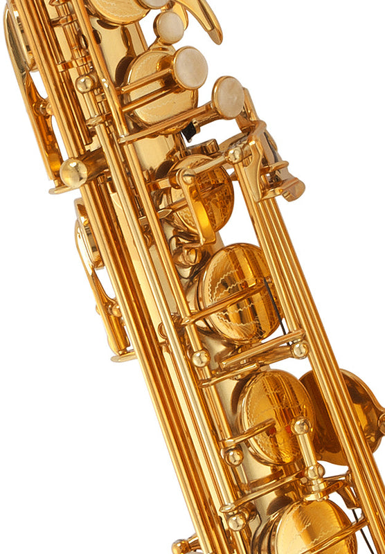 The saxophones are meticulously hand-engraved and assembled for the highest level of quality and workmanship. With keywork up to high F# and exceptional response in the upper and lower registers, the 400 Series saxophones provide even response and intonation. Available with lacquer or matte finish.