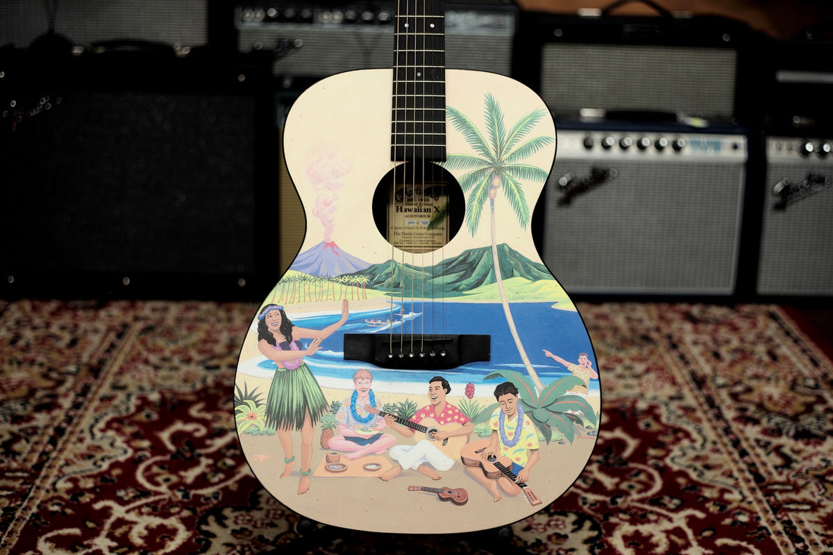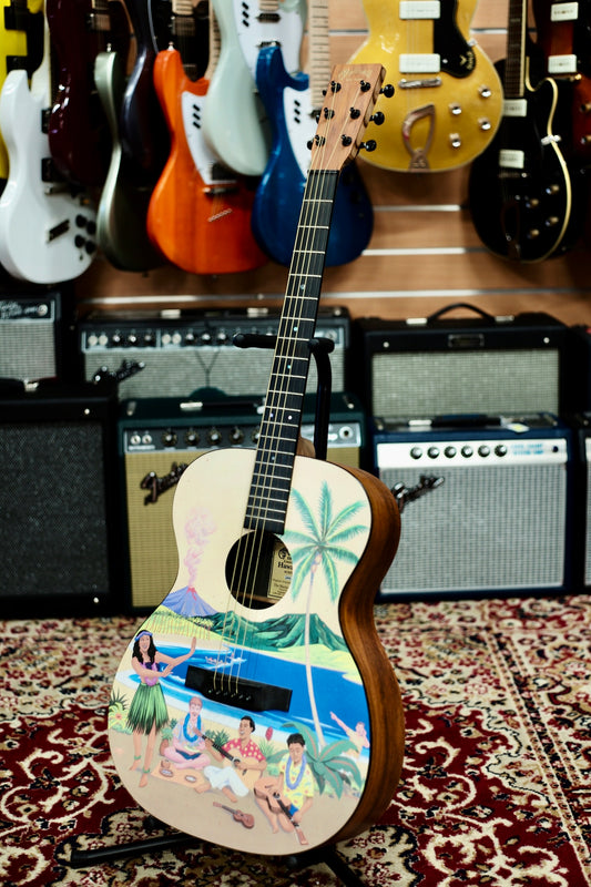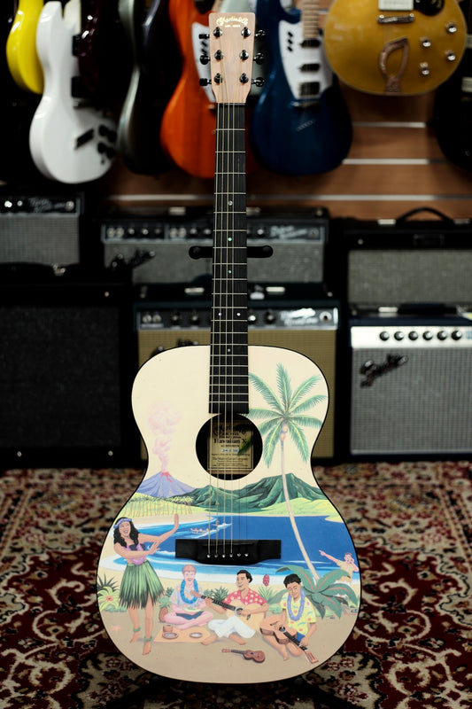 Experience the beauty and tone of the Hawaiian X Limited Edition Auditorium Guitar, crafted with precision and care by C.F. Martin & Co. in Nazareth, Pennsylvania, USA. Adorned with stunning artwork by Robert Armstrong, this N.O.S. model is sure to inspire and delight both beginner and experienced guitarists as well as collectors.