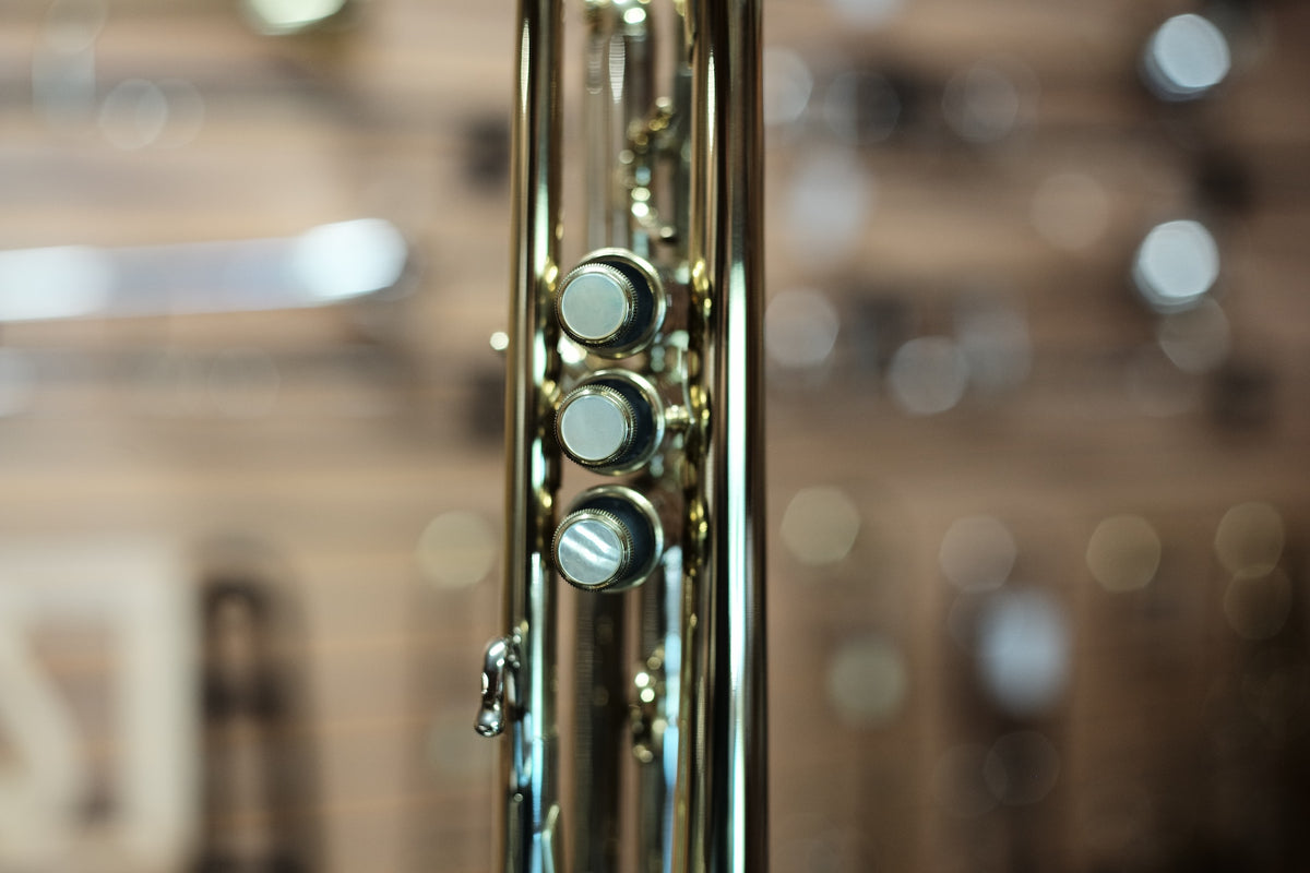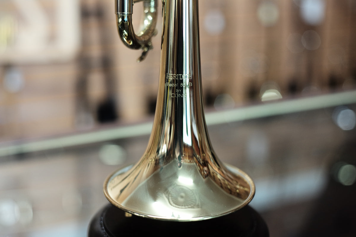 The 80B Heritage model Bb trumpet by Conn, Made in USA with a gorgeous lacquer finish, exudes quality and sophistication.