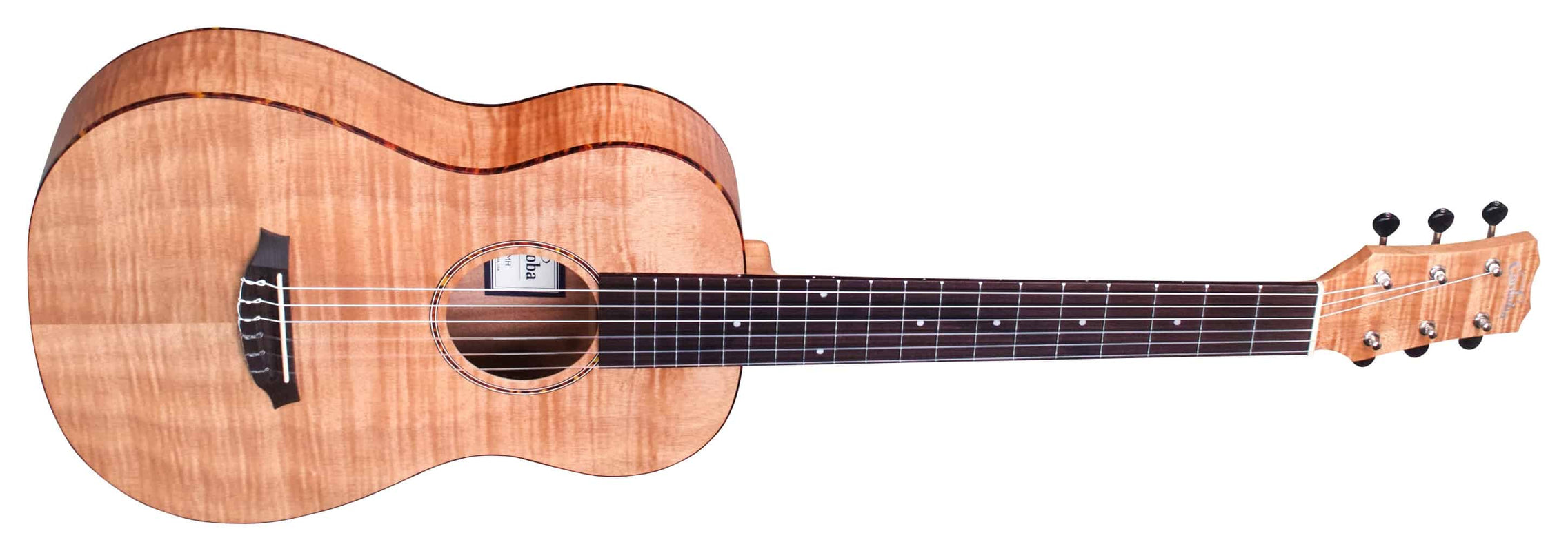 Say hello to the Mini II FMH — Cordoba’s popular Mini travel-size guitar, but slightly bigger and with an extended 580mm (22 7/8”) scale length so it tunes perfectly to Standard E. Despite its small profile, the Mini II has a deeper body depth which creates a well-rounded tone that is close to a full-size nylon string guitar. Built with a flamed mahogany top, back and sides, the Mini II FMH has an exotic look and sounds mellow, soft and balanced.