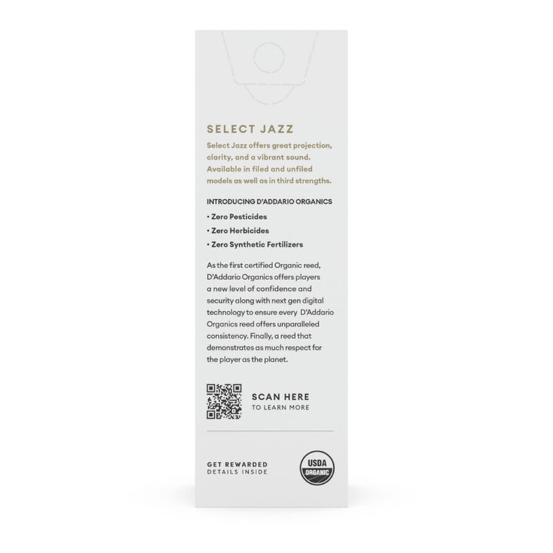 The D'Addario Select Jazz Strength 3S tenor saxophone reeds offer great projection, clarity and a vibrant sound. These unfiled reeds are available in third strengths for optimal mouthpiece pairing.