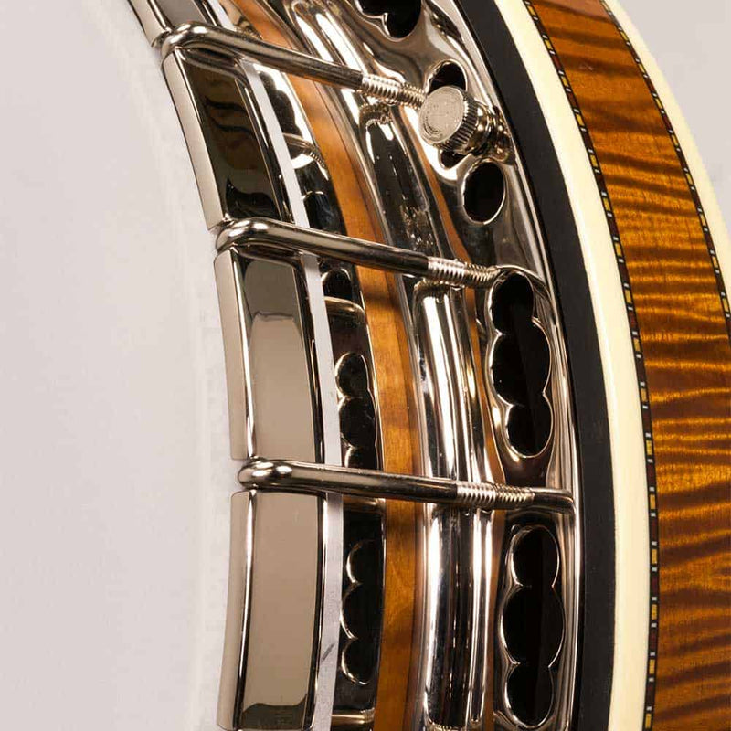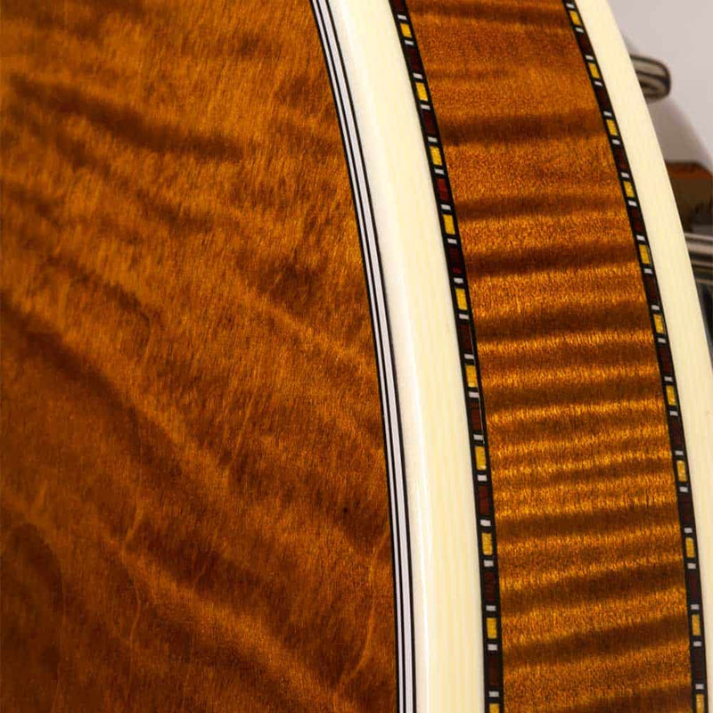 With a brighter tone than mahogany, maple provides a beautiful bass response and great highs. The banjo plays string to string and up the neck at a consistent clarity and excellent volume so it is easily heard amongst a band.