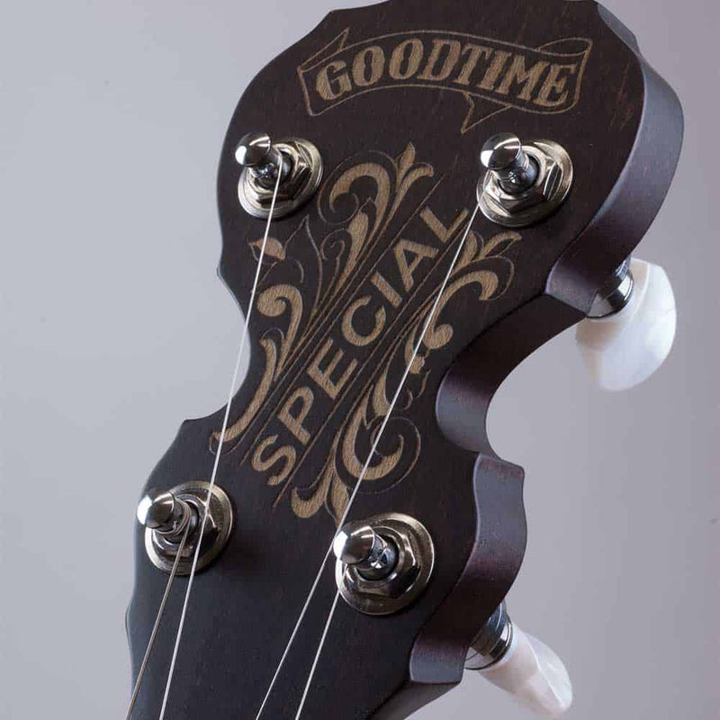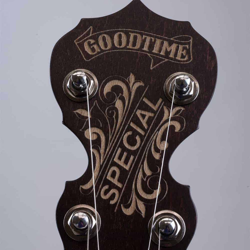The vintage look and vibrant tone of the patented Goodtime Special tone ring set this American made banjo apart. Clearly louder than the Goodtime Two and great for playing in a band setting. Featuring Midnight Maple Fingerboard and Vintage Artisan inspired inlays! Made in America.