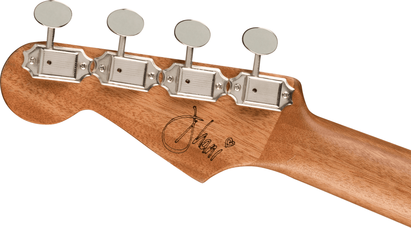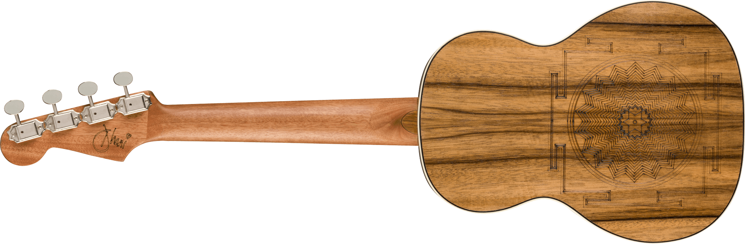 Having carved a unique career path as a multi-instrumentalist, composer, and singer-songwriter, Dhani Harrison’s versatility onstage and behind the scenes has led him to collaborations with a range of artists as varied as Wu-Tang Clan to Jeff Lynne. Harrison grew up playing the ukulele, which soon became an integral tool in his songwriting. Now he’s partnered with Fender to launch the Dhani Harrison Signature Ukulele. The model is available in two different finishes, each with its own unique fretboard inlays and engraved designs on the back of the instrument, all of which hold personal significance to Harrison. The Dhani Harrison Signature Ukulele is designed for live performance, both are tenor-sized and feature a solid ovangkol top with ovangkol back and sides as well as a ¾ depth, upgraded Fender electronics, distinctive build and eye-catching aesthetics that will challenge you to expand your musical horizons.