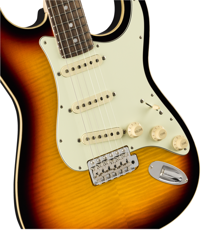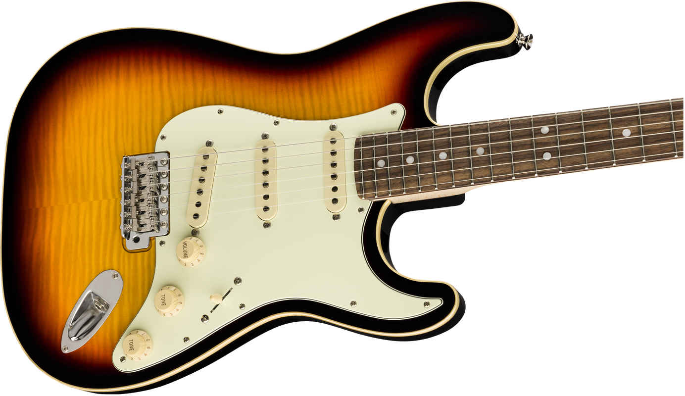 The Limited Edition Aerodyne® Classic Stratocaster® features an elegant flame maple top and body binding.