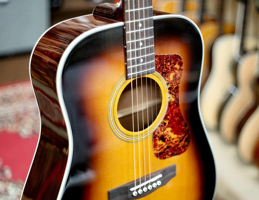 With a fresh start, highly skilled employees, and plenty of room to grow, Guild flourished. It was not long before the Westerlyfactory became renowned for exceptional craftsmanship, quality, and the introduction of many beloved Guild acoustics. The dedication to innovation was apparent, with meticulous attention to detail. Inspired by this golden era, the Guild Westerly Collection carries on the tradition of impeccable workmanship and unwavering excellence by incorporating high-quality materials and classic Guild designs into each instrument.