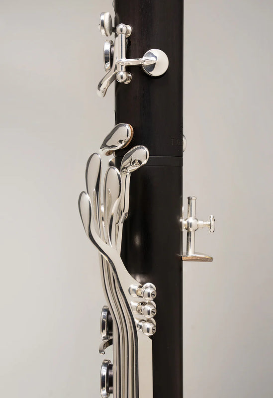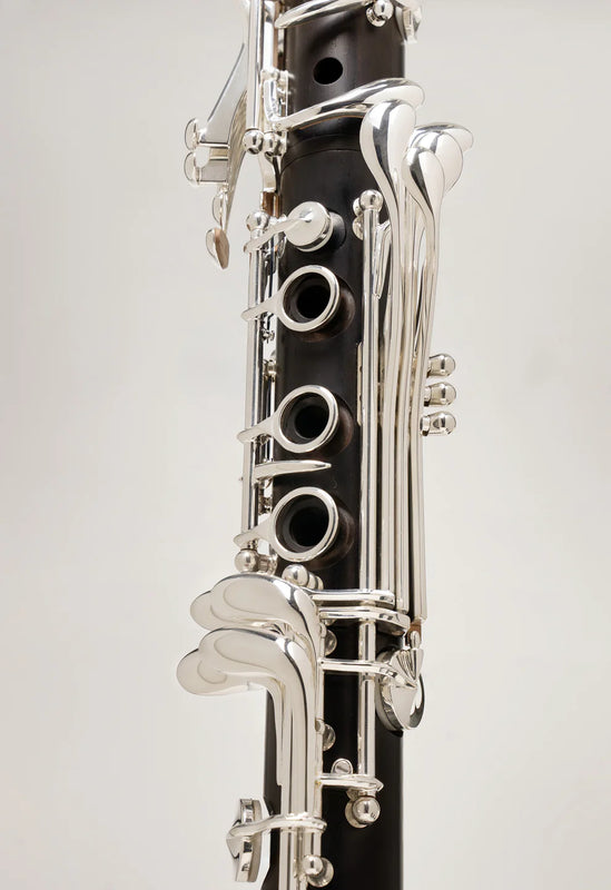 - Keywork: standard N1 Boehm system; silverplated keywork and rings. 18 keys/6 rings. With Eb Lever