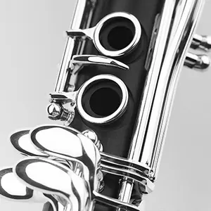 - Keywork: standard N1 Boehm system; silverplated keywork and rings