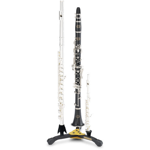 Hercules DS543BB Flute/Clarinet and Piccolo stand holds all your instruments at once and the pegs detach for easy storage and transport. Featuring two flute/clarinet pegs, and one piccolo peg. Storage bag included.