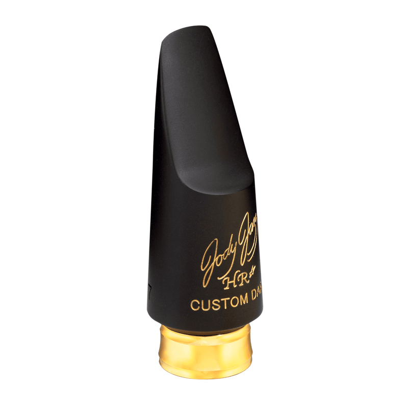 The HR* 7* Custom Dark Alto model is JodyJazz's most beautiful sounding and playing Alto piece, and the darkest sounding hard rubber mouthpiece in the range. The Chedeville Rubber imparts a rich warm sound and the rounded sidewalls add complexity on top of the core sound. The large round chamber puts the timbre in a warm honey zone and the inspired addition of a thick heavy gold-plated brass band on the shank boosts the amount of harmonics in the sound.
