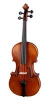 Handcrafted 'Orchestra' cello from solid selected spruce top, with solid flamed maple back and sides, orange-brown antique handvarnish on amber primer.