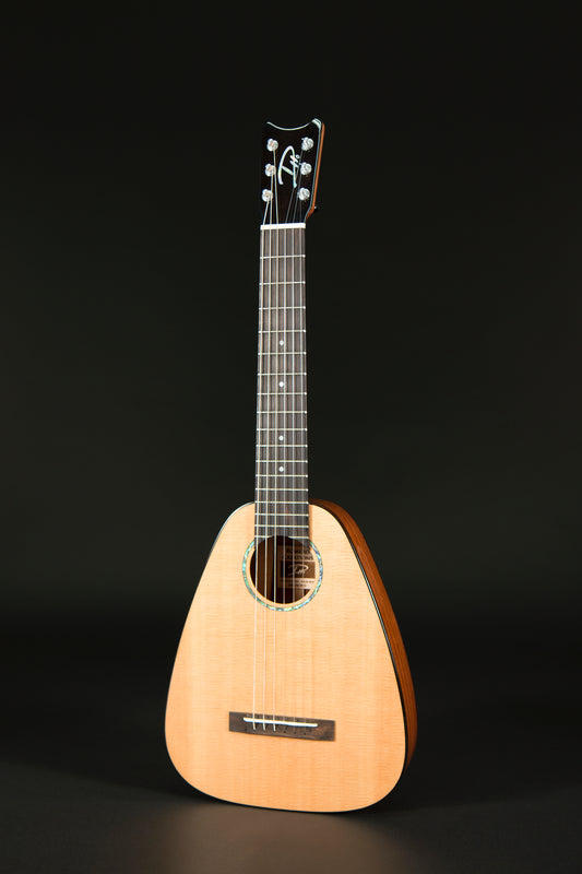 This is a recording quality instrument that is compact for the touring musician and has all the tone and power of a full-sized guitar! The Tiny Tenor style body provides a rich and even tone which sounds much bigger than it looks.