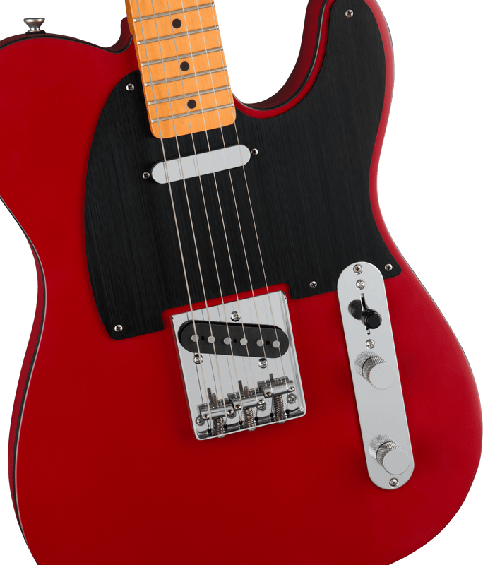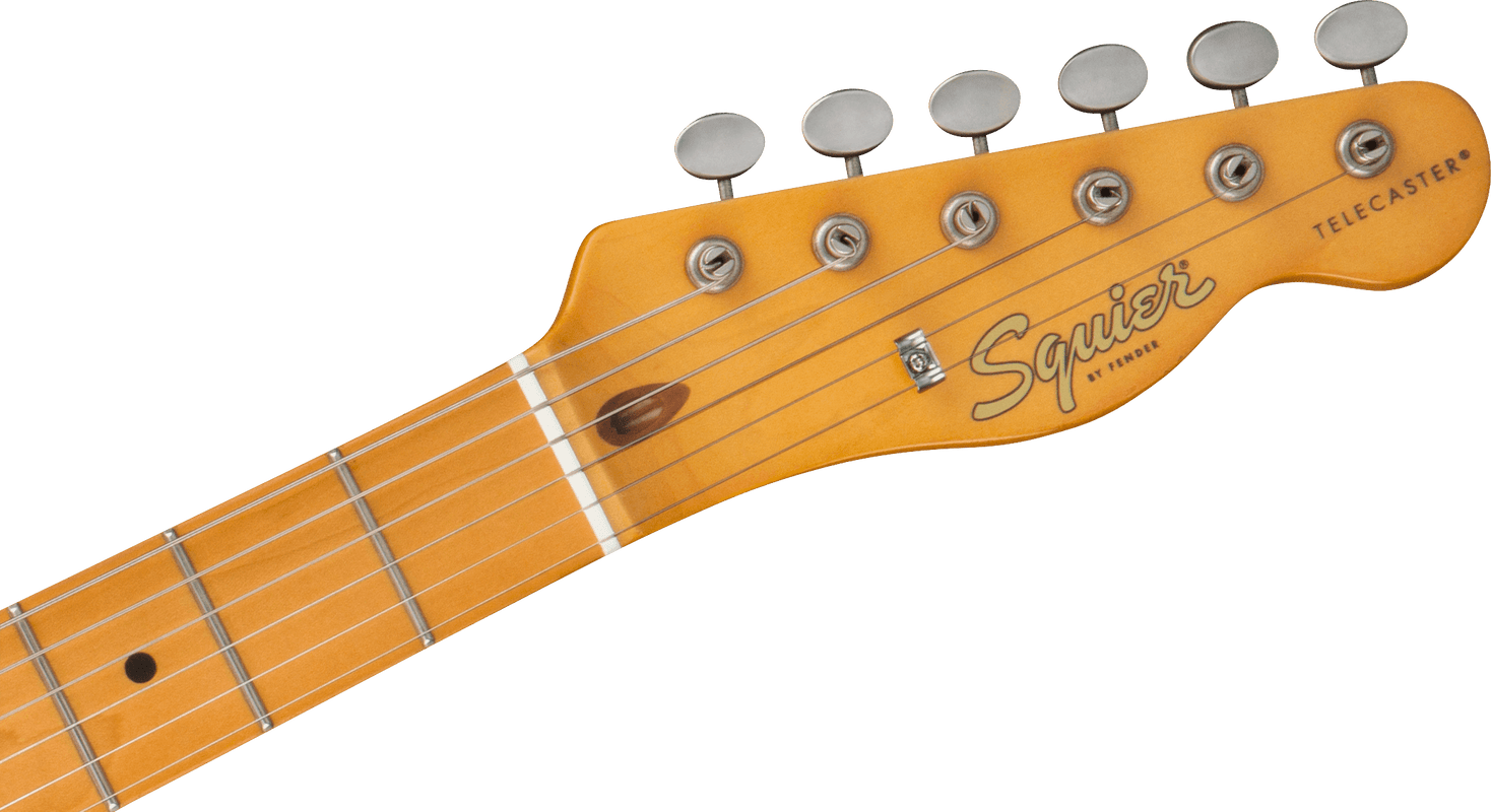 The Squier® 40th Anniversary Telecaster®, Vintage Edition is a soulful tribute model trimmed with a collection of classic features for the retro-minded Squier enthusiast. Featuring aged chrome hardware, an anodized aluminum pickguard, a vintage-tinted maple neck, an engraved anniversary neck plate and satin finish throughout, this Tele® honors the heritage of the Squier catalog and its ancestry. Player-friendly refinements of this commemorative model include a slim and comfortable "C"-shaped neck profile for an easy playing feel, vintage-style tuning machines and 3-saddle string-through-body bridge for authentic performance and style, and Fender-Designed single-coil pickups with alnico 5 magnets for familiar Tele tone.