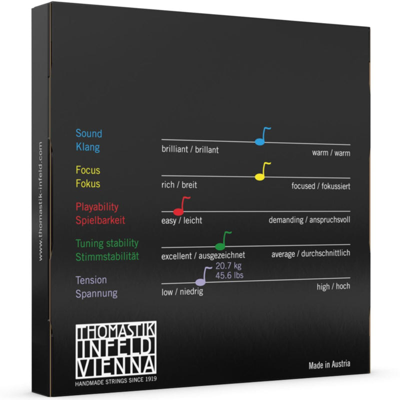 Thomastik Dominant 1/2 viola strings are made with a highly flexible, multi-strand synthetic core to provide the tonal warmth and feel of a gut string while being impervious to changes in humidity. The sound is soft, clear, with a stable intonation, and rich in overtones. Widely regarded as “the reference standard”, these are one of the world’s most popular strings!