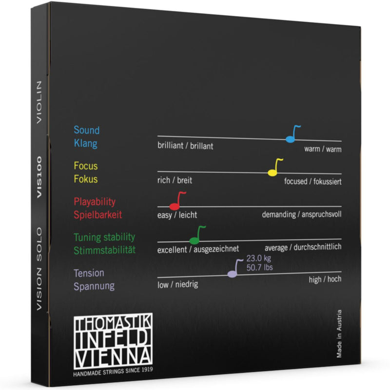 Vision Solo violin strings feature a technically advanced formulation and architecture designed to produce a blend of exceptional performance and playing characteristics. They offer great warmth with focus and clarity, as well as energetic and intense projection. Using advanced synthetic core technology, they are easy to play and settle in just one to two hours. They offer unparalleled tuning stability, respond quickly and are more durable than most synthetic core strings.